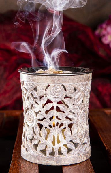 Bezauberndes Räucherstövchen in alter indischer Handwerkskunst hergestellt. Für Traditionalisten unter den Räucherern.